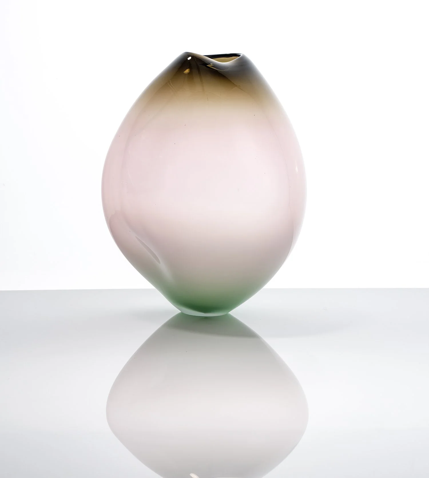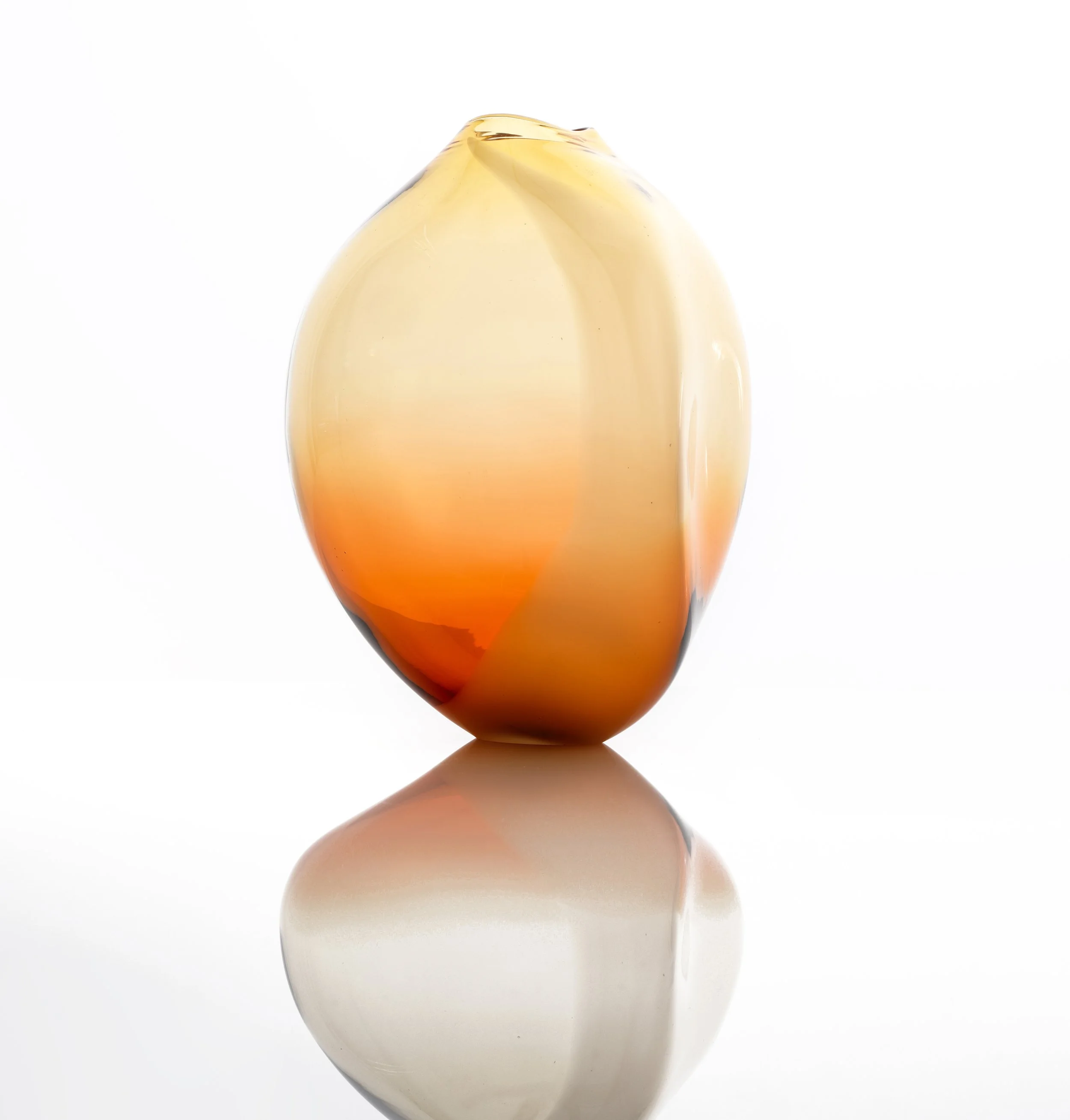 Blown glass sculptural vessels and forms inspired by botanical themes skillfully and intuitively blend colour, movement, light and reflection.